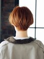 オレンジベースのカラーがガーリーで可愛いマッシュショートスタイルです☆おもためのバングですが、隙間を開けて肌感を見せることで軽さを出しています☆ゆるっとした癖を活かして動きのあるスタイルにしあげました☆[高崎/高崎駅]