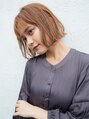 明るめのショートボブスタイル 顎のラインの前下がりボブなので、小 顔効果になります。 また顔まわりの毛を軽くすることによって、より動きがでて とても可愛くなります!前髪は薄めで少し長めにすることで今っぽいスタイルになります。