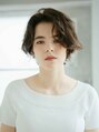 襟足をそこまで切り込みすぎない女性らしさを残したハンサムショートです。短くはしたいけどボーイッシュになり過ぎたくない方におすすめです。パーマをかけることによってクールな雰囲気の中にも柔らかさをだしています。【いわき】