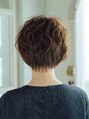 ショートカットに、ウェーブをだして大人なショートスタイルに!バングを広めにとり、サイドは耳にかけて肌をだします。すっきりと見え、肌を明るくみせてくれます。大きめのウェーブのパーマをかけて、カラーはブラウン系で!【いわき】