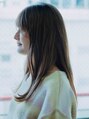 顔まわりとトップにレイヤーが入ったロングのスタイルです。前髪をシースルーバングにすることで前から見たロングの重たさが目立たないようにしています。カラーは11トーンのミルクティーベージュで透け感のあるカラーです。
