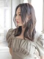 柔らかな印象のブラウン、ベージュ系のカラーにモデルの柔らかい表情に合わせた自然でふんわりとしたスタイリングで仕上げています。 顔まわりのレイヤーは内に巻き、自然な動きを出しています。