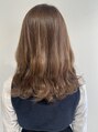 ツヤ感を出しつつ、赤味を抑えるベージュ系カラーです透明感も艶感もかなえる人気カラー◎柔らかい質感のカラーなのでコテで毛先を巻くとさらに柔らかさが出ます^^[松戸/松戸駅/松戸駅西口/グレージュ/透明感カラー/セミディ/コテ巻きスタイル]