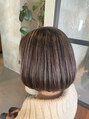 まとまりやすさと首元のスッキリ感を両立させた、丸みのあるコンパクトな王道の大人ボブ。カラーは白髪の悩みをオシャレに解決する白髪ぼかしハイライトとアッシュベージュをベースに。細かくハイライトを入れることで白髪と馴染んで柔らかい印象になります。