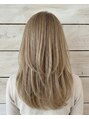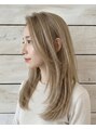 胸上でバランスを整え、顔まわりから入れたレイヤーで軽さと動きを演出。透け感のあるシアーベージュで柔らかさと上品さを引き出し、ナチュラルなのに洗練された印象に仕上げました。