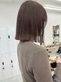 ミルクティーブラウン ラベンダーベージュ ぱつっとボブ オン眉ボブ 暖色系カラー 前下りショート[大阪梅田駅/ショートカット/ショートボブ/インナーカラー/ハイライト/縮毛矯正/髪質改善トリートメント/前髪カット/白髪ぼかし/パーマ]