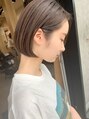 ミルクティーブラウン ラベンダーベージュ ぱつっとボブ オン眉ボブ 暖色系カラー 前下りショート[大阪梅田駅/ショートカット/ショートボブ/インナーカラー/ハイライト/縮毛矯正/髪質改善トリートメント/前髪カット/白髪ぼかし/パーマ]