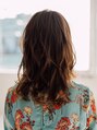 カットは胸上くらいの長さから顔まわりにしっかりレイヤーを入れてIラインシルエットになるように切って、バングを流しました!パーマをゆるくかか動きのあるスタイルですが、目のラインからかけることにより甘さが出て大人可愛いスタイルに!