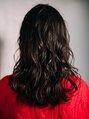 全体的にカールがあるスタイルになっております!前髪はパーマを出して眉毛が見える個性的過ぎないオン眉で、黒髮の重さがあまり出ないようにカットをしてあります☆