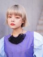 今流行りの顔周りデザインカットが特徴な個性派ボブです。ぱつんとしたラインカットと、ブリーチ2回以上でつくるホワイトミルクティが、優しく可愛らしい雰囲気を演出してくれます。個性立ちしたい方におすすめです。