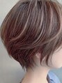 ショートカット。全体量感調整。スライドカットで毛量調整することで柔らかさアップ!カラーもハイライトを入れてあげてるので動きもより出るようにしてます!全体カラーはグレージュになってます。