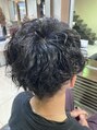 マッシュの多毛、直毛の毛質でパーマがかかりずらい感じでしたが、緩めのツイストとスパイラルでいい感じに。前髪を上げるスタイルも◎イケてるメンズです。