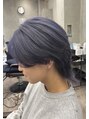 色落ちがシルバーになるように濃いめのブルーラベンダーでカラーしました☆長めのウルフでアレンジが効くスタイルになってます○