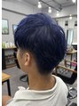 今までカラーもパーマも何も履歴がない状態から、ブリーチ1回でいけるところまで抜いてカラー剤でネイビーブルーを入れました!人によっては2回ほどブリーチをする必要があります。