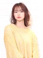 シースルーバングの外ハネミディ表面にレイヤーを入れる事により立体感のあるスタイルになっています簡単にスタイリングできるオシャレな髪型