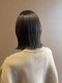伸びてきた部分だけブリーチで明るくして、濃いめのミルクティーベージュを調合して色落ちも楽しめるように。カットは、全体をマッシュベースで切り、質感調整しています。前髪は下ろしとセンターパートどちらもスタイリングしやすいように。