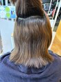 優しめな中性、酸性域の縮毛矯正剤を使用することでカラーと同日の施術でも髪に負担をかけすぎずに癖を落ち着かせることができます。