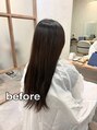 ロングヘアーからばっさり肩につかないボブに。癖で広がりやすい髪に縮毛矯正を施し、楽に扱える様にご提案させていただきました。