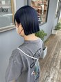 ワンブリーチで個性的で可愛いネイビーブルーに♪パツッと重め切りっぱなしボブでより雰囲気に合わせてカットさせて頂きました!