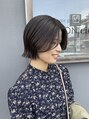 アゴラインの切りっぱなしし顔まわりの流れを作った大人ボブ♪赤みを消した透明感オリーブグレーで、雰囲気に合うよう似合わせカラーさせて頂きました!