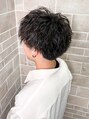横がツーブロックになったマッシュショートで、緩やかなかかり具合のツイストパーマ。緩めでも、しっかりカッコ良い無造作感。見た目のカッコ良さはもちろん、扱い易さもピカイチ。柔らかめのワックスを適当に揉み込むだけでカタチになります。
