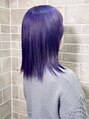発色の良いラベンダーカラー。超しっかり1回ブリーチした後、カラーバターでカラーリング。意外と誰にでも似合う色味。紫系で高発色を求めるなら、ブリーチして染めるのが必須。ちなみに、紫系統のブリーチ髪は、色落ちの過程も綺麗に楽しめる。