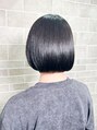 前方がやや短い前上がりのシンプルな切りっぱなしボブ。ストレートアイロンかカールアイロンで毛先をサッと内巻きにすればカッコつくのでお手入れが簡単。もちろん外はねしてもカワイイ。髪質改善トリートメントの効果で広がり知らずになれる。