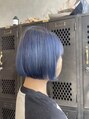 ブルーハイトーンカラー×切りっぱなしボブ10代20代ブリーチ