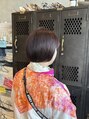 艶カラーピンクブラウン切りっぱなしミニボブ小顔丸みスタイル