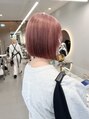 ぱつっとボブ×ピンクベージュ