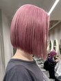 ダブルカラーピンクベージュベージュカラーケアブリーチミニボブ
