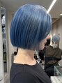 ダブルカラーブルーアッシュカラーケアブリーチショートボブ
