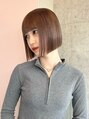 タッセルボブ切りっぱなしボブミルクティーベージュ外ハネボブ
