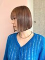 タッセルボブ切りっぱなしボブミルクティーベージュ外ハネボブ