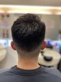 伸びてくると両サイドが膨らみやすいのですっきりとフェードスタイルにしました。トップは髪のクセでボリュームが出にくかったのでパーマを当てることでセットしやすくしかもイメージチェンジもはかれました。