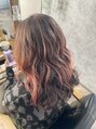 バレイヤージュ風ピンクハイライトカラー