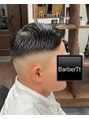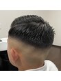 クラシカルなスキンフェードスタイル、サイド3~0mmのグラデーションでバリカンとスキンシェーバーを使用。トップは7:3パートに分けてセット