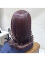 うるつや☆カシスピンクカラー バイオレットをプラスした暖色系カラーになっているので黄色っぽさを抑えて色落ちもきれいで長持ちします 全体をゆるく外ハネして顔まわりを外巻きにすることでより艶っぽく見えます♪