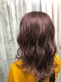 ラフスタイル 大きめのコテで波ウェーブ そこにオイルorバームをもみ込んだらOK!!楽々簡単スタイリング♪カラーはピンク強めながらも、大人な雰囲気が出るようにくすませてます♪