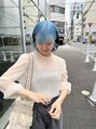 - ケアブリーチで丁寧にリタッチして、色落ちがホワイトになるようなシアーブルーカラーにしました。