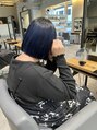 - ケアブリーチを使用して深みのあるネイビーブルーにして、ぴたっとしたタッセルボブにカットしました。