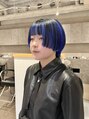 - ブリーチを使用してブラック×ブルーのアンブレラカラーにして、ショートウルフにカットしました。