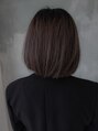 あごラインのぱっつんワンレングスボブに薄め前髪。カラーはブリーチ後、ラベンダーグレイッシュ系カラーをオンカラー。徐々に色味も変わるので褪色具合も楽しめるカラーです。長さが短いので毛先を内巻きに入れすぎないように!![西千葉/西千葉駅]