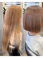 ブリーチカラー ベージュ ボブ 小顔カット 丸みボブ