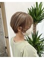前髪が割れないヘアスタイル/耳掛けショート/ハイトーンベージュ