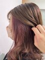 インナーカラーでさりげないオシャレ感をプラス!インナー部分はラベンダーピンクに仕上げ、透明感と色落ちも綺麗なブロンドになるように配合!表面はサンドベージュで、オシャレな赤みを抑えたベージュ系に仕上げ、コントラストをプラス!