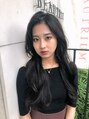 黒髪ロングでも重たくならずに軽やかな大人ヘアに。まとまりのある重めベースにスライドカットで柔らかい毛先の動きをプラス。軽く巻いただけでゆるやかなこなれヘアの完成。
