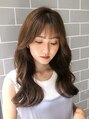 ゆったりとした大きなウェーブロング。重めベースのカットラインでツヤとまとまりを出しながら上品に揺れる大人の雰囲気に。前髪と顔周りのカットで小顔を造ります。