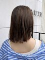 切りっぱなし感のある大人のナチュラルボブ。丸くなり過ぎないシルエットで、乾かしてオイルをつけるだけで完成する簡単スタイリングです。