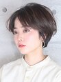 前髪をセンターで分けたマッシュショートスタイル。丸みをつけて、ショートでも女性らしいフォルムにカットしています。手ぐしだけで形になるショートはスタイリング簡単です!耳にかけたときの耳周りの透け感にもこだわっています!